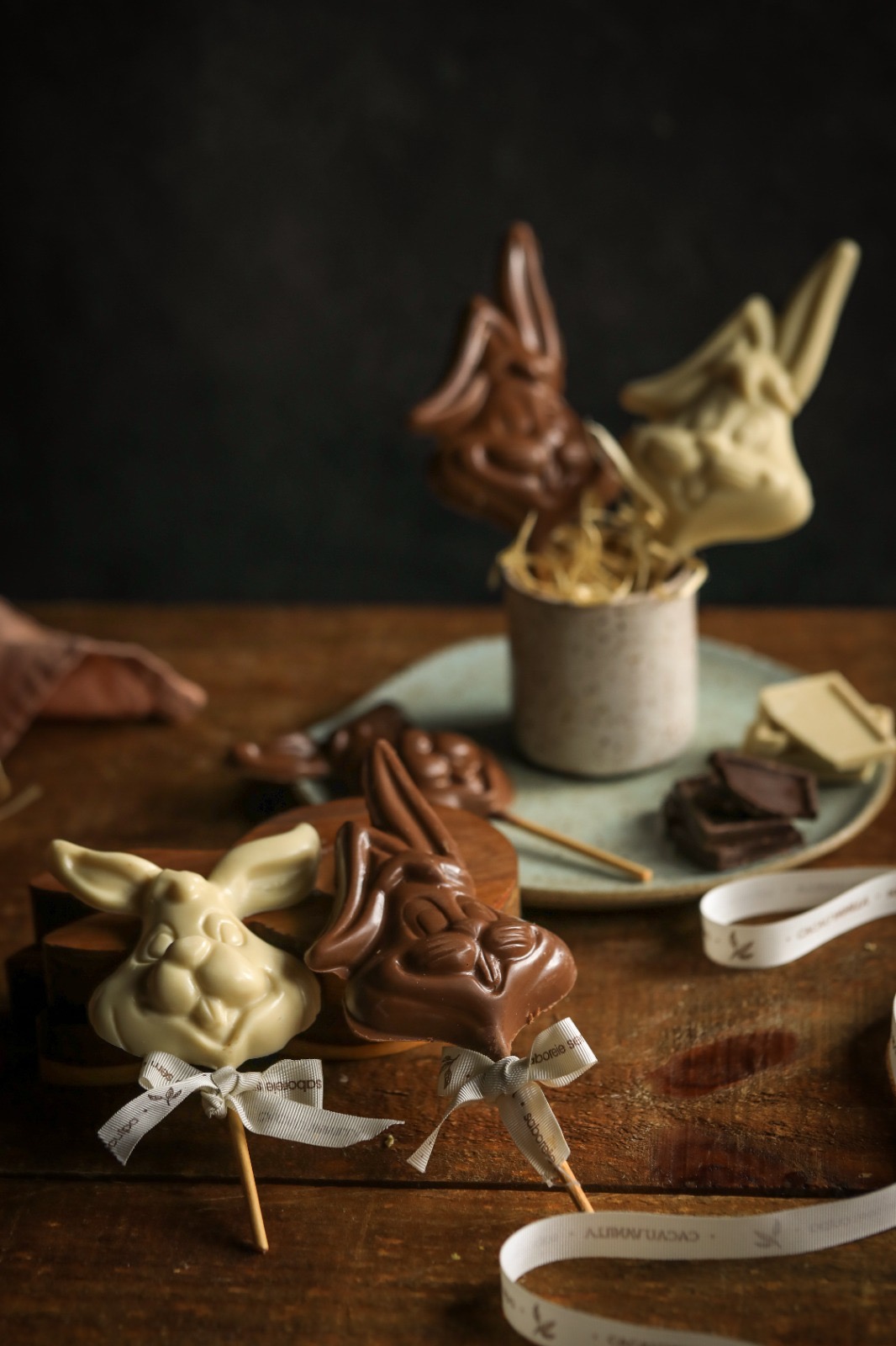 Lançamento desse ano! Puro charme e cheios de doçura, pirulitos de coelhinhos disponíveis nos chocolates: branco ou ao leite de coco.