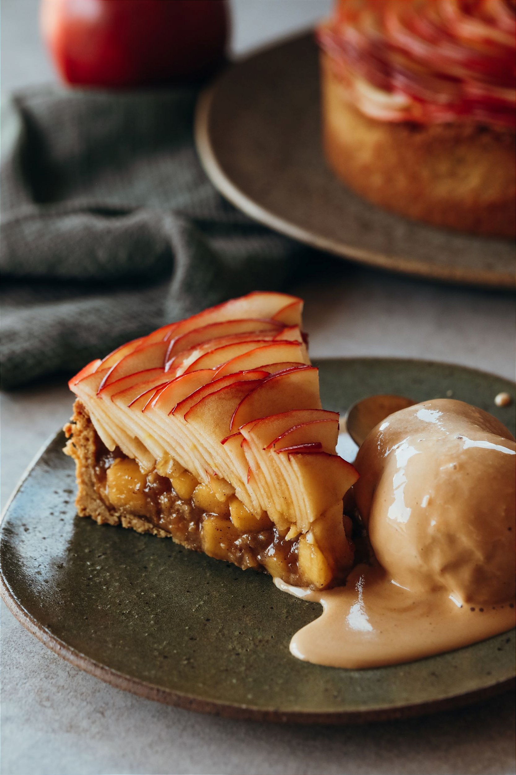 Ingrendientes: base: farinha de amêndoas, aveia sem glúten, néctar de coco, óleo de coco, farinha de linhaçã, água. Doce de leite: castanha de caju, açúcar de coco, água, biomassa de banana verde, extrato de baunilha, sal marinho. Compota de maçã: maçã gala, açúcar de coco, fécula de batata, limão, canela em pó. Lâminas de maçã: Maçã gala banhadas em calda de: água, açúcar demerara orgânico e limão.